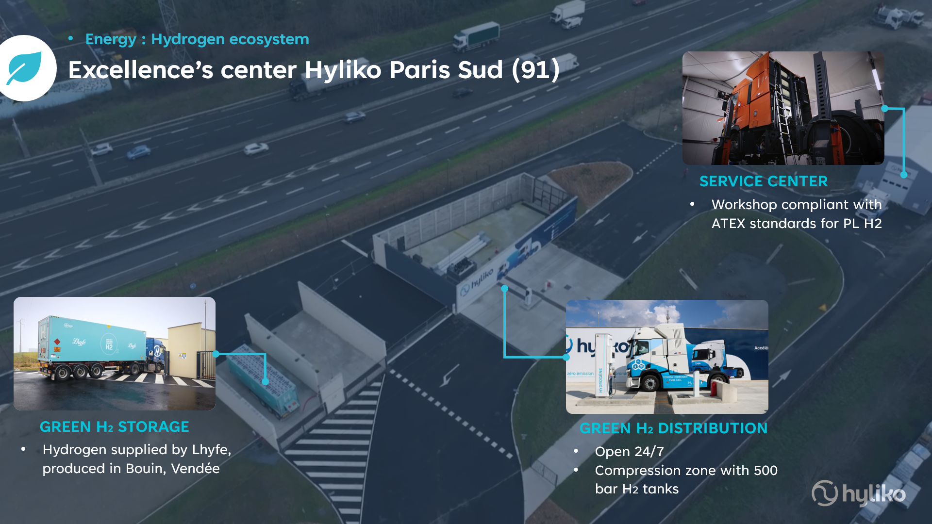 The Hyliko Paris Sud Center of Excellence, located in Villabé, Essonne, is the first center in France region entirely dedicated to the operation of hydrogen-powered heavy goods vehicles.